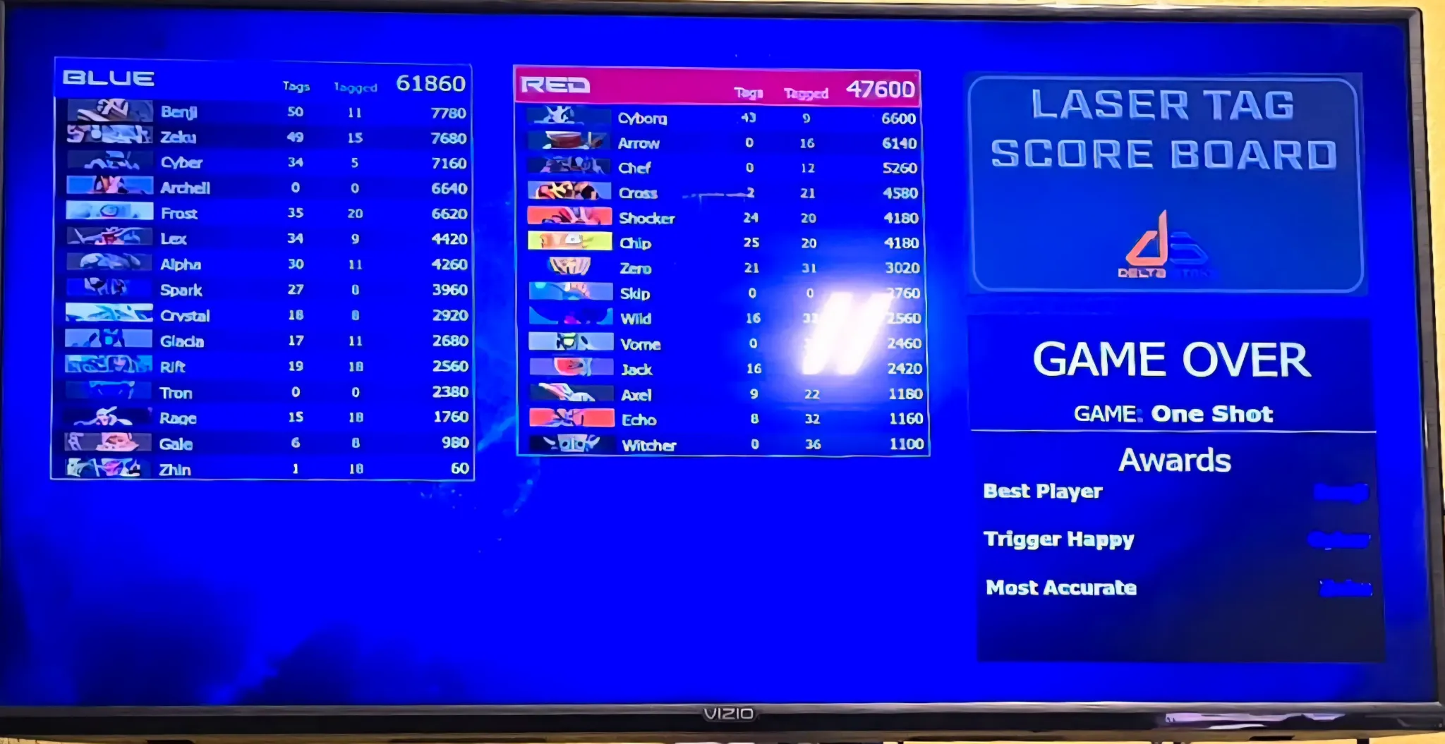 Game Scorecard with Player Results